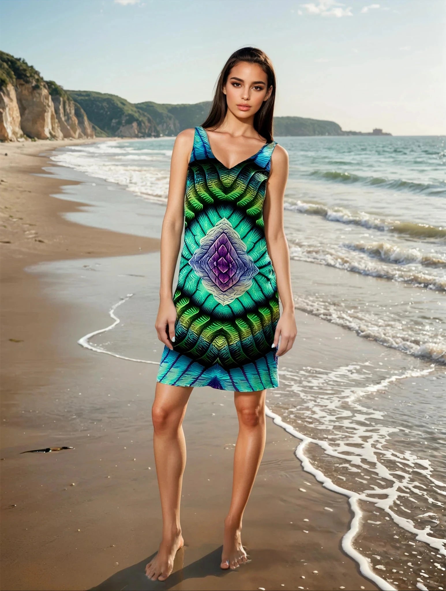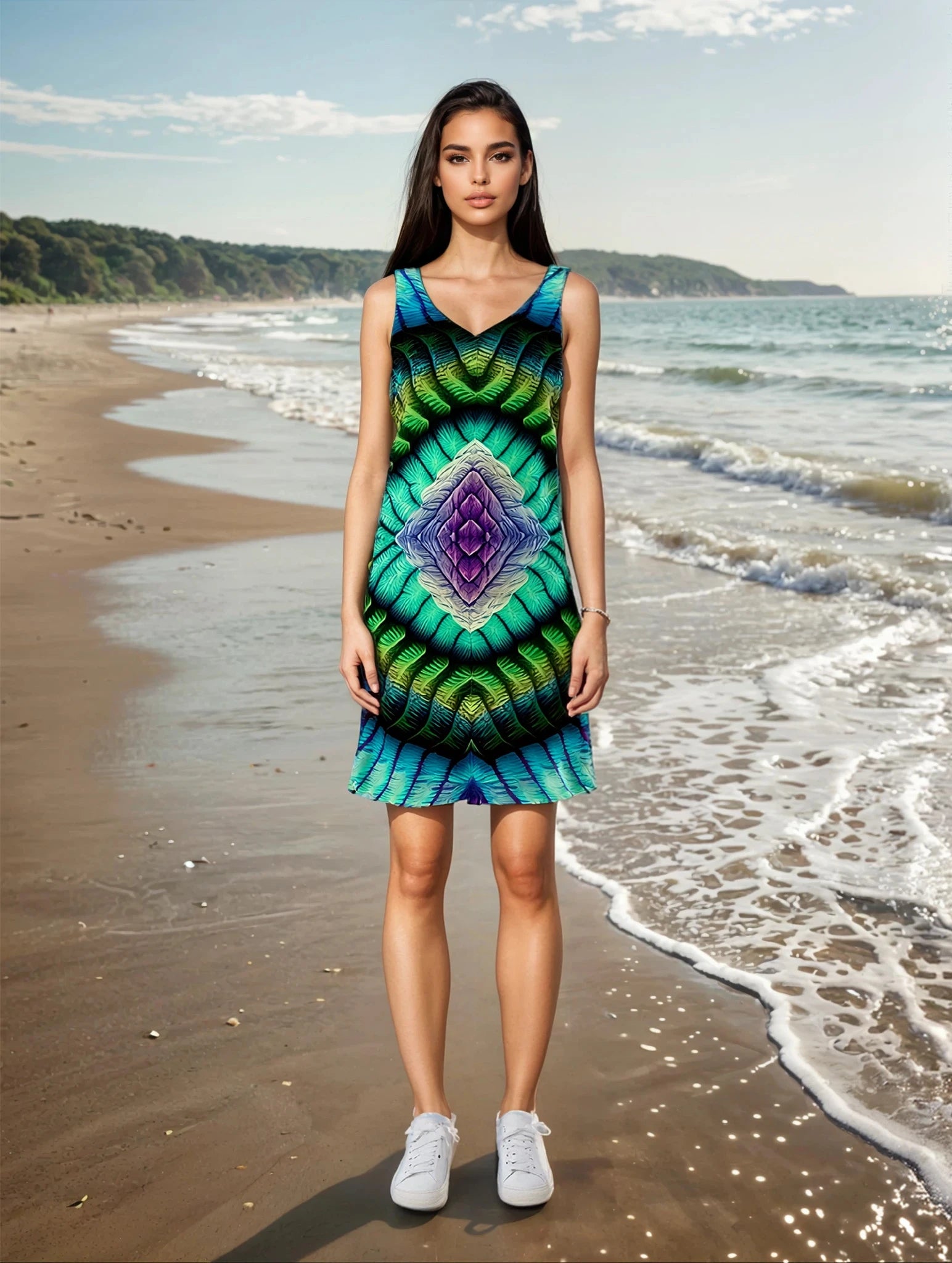 This 38" reversible garment features original digital artwork by 3DBLOCKS LLC, with a striking print on one side and solid black on the other. Crafted from premium ITY knit (95% polyester, 5% spandex), it offers a comfortable 7.5” V-neck drop and wrinkle-free, machine-washable fabric ideal for travel. Available in sizes XS to XL and made in Canada, this piece combines artistic design with practical wearability, perfect for those seeking both style and versatility.